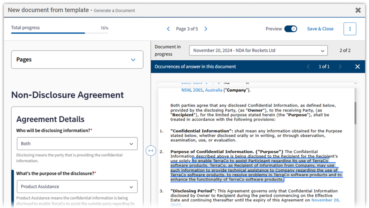 - 대화형 설문지 시스템: 체계적이고 사용하기 쉬운 질문으로 법무팀과 비법무팀의 문서 작성을 안내합니다.
