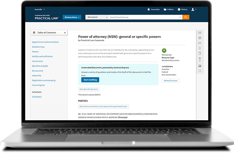 Practical Law는 Westlaw의 주요 법률 자료, 문서 양식, 심화 자료를 통합하여 제공합니다. 다양한 법률 정보를 한곳에서 손쉽게 찾아 활용할 수 있어 효율성을 높여줍니다. 포괄적이고 신뢰할 수 있는 리소스를 통해 정확하고 신뢰할 수 있는 법률 자문을 제공할 수 있습니다.